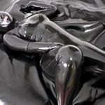超巨乳のラバードールがラバーマスターの言いなりになりラバーワンピーススカート姿で栓付開口マスクで顔面拘束されて容赦のないイマラチオで責め立てられて、ラバーインナーヴァギナストッキングに履き替えてバイブ責めからのラバーファック。